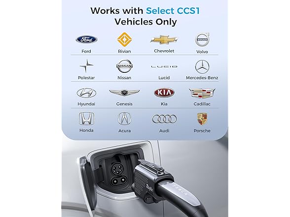 - [Tailored for Tesla Superchargers] Our CCS1 adapter is designed exclusively for Tesla Superchargers —not compatible with Tesla Wall Connectors, Destination Chargers, or Mobile Chargers. Currently supports CCS1 vehicles from Ford, Rivian, GM, Volvo, Polestar, Nissan, Lucid, Mercedes-Benz, Hyundai, Genesis, and Kia. Backed by extensive testing, it achieves 98%+ compatibility across Tesla Supercharger models, ensuring stable connections. If your vehicle isn't listed, please contact us to confirm.