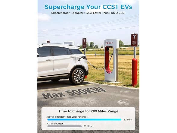 - [Ultra-Fast Charging, Max Efficiency] Unlock the full power of Tesla Superchargers—our NACS to CCS adapter supports up to 500A and 500kW output, maximizing speed and performance. Compared to standard public CCS1 chargers, charging time is reduced by 40–80%. For example, the Ford F-150 Lightning can gain over 200km of range in just 15 minutes. Whether you're in a hurry or on a road trip, this adapter turns long waits into quick pit stops—so you spend less time charging and more time traveling.