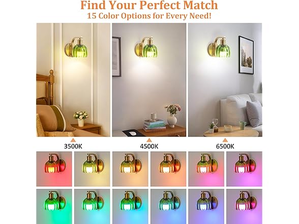 - Upgraded 15 Color Options & 2 Dynamic Modes: Brighten your space with customizable lighting! Choose from warm 3500K to cool 6500K color temperatures, 10 brightness levels (10%-100%), and 12 vibrant RGB colors. Whether you want a cozy atmosphere or an vibrant illumination, our set of two wall sconces has you covered. In addition, enjoy 2 dynamic modes: smooth or flash. Perfect for relaxation, productivity, or adding flair to any room! (Note: Please fully charge the bulb before use.)
