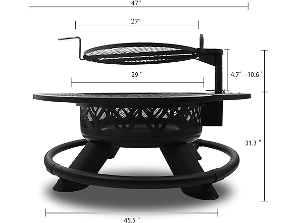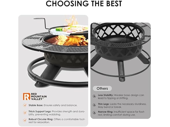In the Box: (1) Red Mountain Valley 47" Outdoor Fire Pit with Adjustable Grill, 2-in-1 Outdoor Large Wood Burning Firepit Bowl, Bonfire Patio Fire Pits with Cooking grates