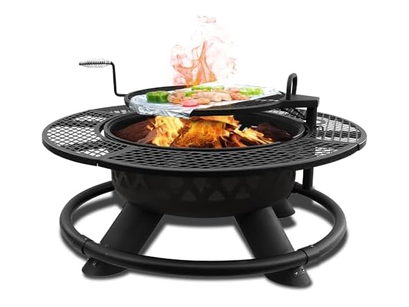 Red Mountain Valley 47" Outdoor Fire Pit with Adjustable Grill, 2-in-1 Outdoor Large Wood Burning Firepit Bowl, Bonfire Patio Fire Pits with Cooking grates