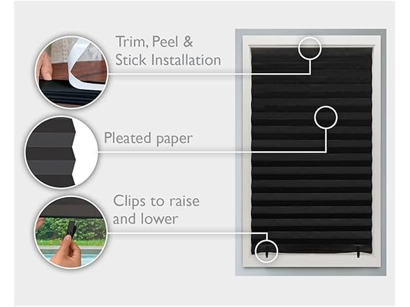 Redi Shade No Tools Original Blackout Pleated Paper Shade Black, 36 in x 72 in, 6 Pack