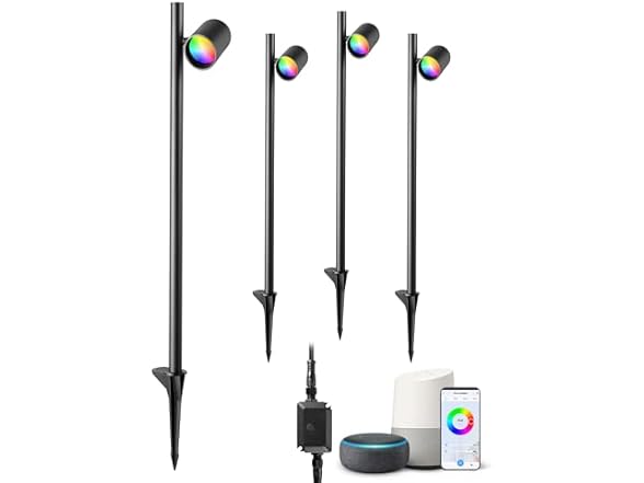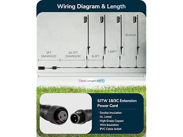 - 【Easy to Install】No splicing or tools required, attached 4 fast lock connectors and 4 stakes make it easy to connect the led landscape lights low voltage to transformer or low voltage wires, then insert the light stake into the suitable place on the ground; extra accessories about transformer, low voltage wires are not included