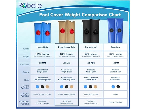 Robelle 3809-20-BLK Premium 20g. Double-Chamber 8-Foot Black Winter Water Tube For Swimming Pool Covers