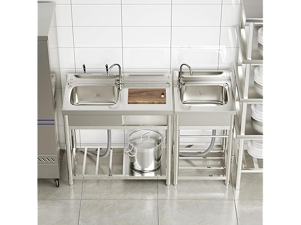 - Our sink set is perfect for handwashing and cleaning food, fruits, and vegetables. It's versatile enough for any kitchen, bar, restaurant, dessert shop, laundry room, utility room, cafeteria, garage, or any other commercial setting. It becomes an invaluable asset during a backyard or garden BBQ.