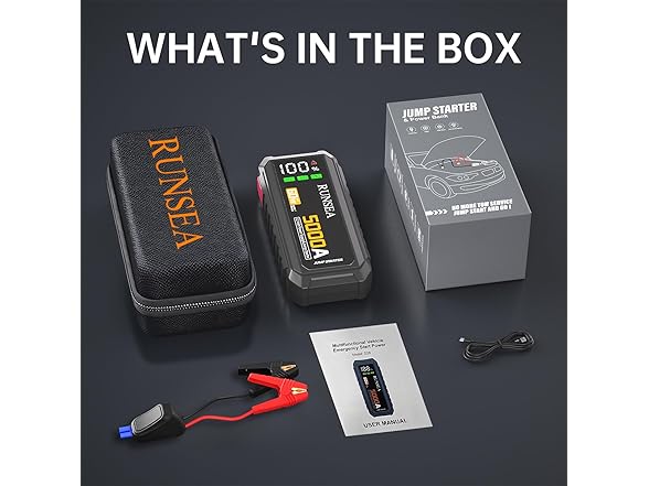 - WHAT’S IN THE BOX:D28 jump starter, heavy-duty clamps, USB-C charging cable, and storage bag. (Wall charger is not included,you can opt to purchase separately ASIN:B0FHPSGLML)