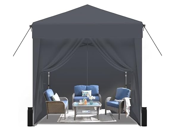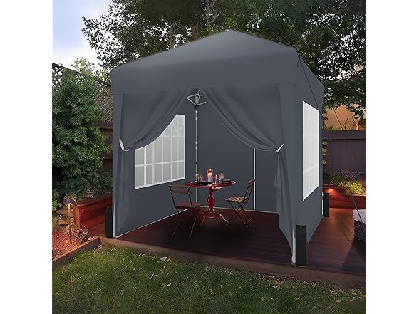 - EASY ONE-CLICK SETUP: Our 6.6 x 6.6 pop up canopy tent features central locking system. This outdoor canopy for patio can be easy and fast setup or takedown in seconds without tools, perfect tent for camping, tailgating, beach, backyard events, farmer markets and outdoor parties.