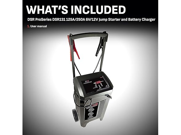 Power up vehicles with confidence using the DSR131 DSR ProSeries battery charger and jump starter, designed for professionals who demand reliable performance in demanding environments. This heavy-duty battery charger automotive solution supports both 6V and 12V systems, delivering 250-amp engine starting power and a 50-amp boost mode to get cars and trucks back on the road fast. Built as a commercial battery charger, it includes intelligent automatic charging and a digital display for clear monitoring. With durable wheels and a rugged case, this battery charger on wheels is built for mobility in garages, repair shops, and fleet operations. Whether you're servicing sedans or diesel trucks, this car battery charger heavy duty unit ensures reliable starts and long-term battery maintenance. A trusted tool for anyone needing a truck battery charger heavy duty enough for commercial fleets but smart enough for regular car use, the DSR131 combines high-output charging power with automatic safety features for a smarter, faster charge every time. If you’re searching for a dependable car battery charger that keeps pace with tough jobs, the dsr battery charger delivers performance you can count on.
