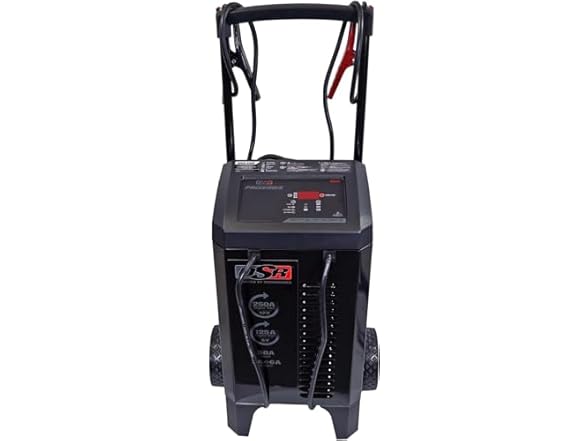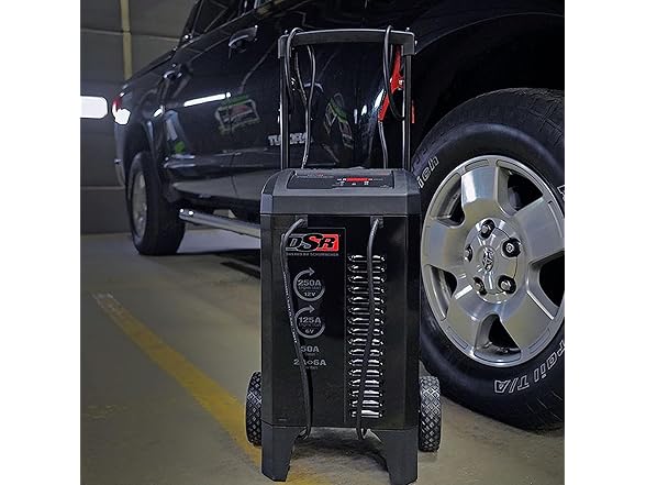 - Heavy-Duty Engine Starting Power - This heavy-duty wheeled battery charger offers 250-amp jump starting for 12-volt batteries and 125-amp jump starting for 6-volt batteries.Its 50-amp boost mode can also quickly revive deeply discharged batteries.
