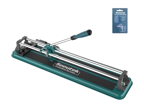 Seeutek Manual Tile Cutter, 14 inch Professional Porcelain Ceramic Tile Cutter, Double Rails Design Tile Cutter Tool, with Tungsten Carbide Cutting Wheel and Laser Guide Positioning Professional tile cutter can be used for various household and industrial projects. No dust and no noise during tile cutting, in comparison to an electric tile cutter, the manual tile cutter provides a quieter and cleaner cutting experience. Specification: Max Cutting Length: 17" (432mm) Min Cutting Width: 1.38" (35mm) Max Cutting Thickness: 0.6" (15mm)