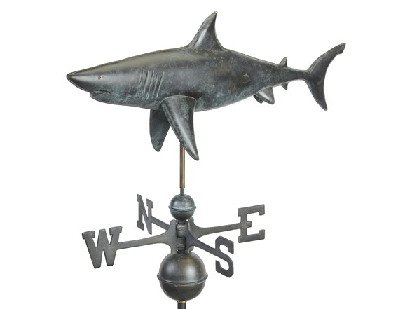 Just when you thought it was safe to go back in the water, here comes Good Directions fearsome shark weathervane! You won't need a bigger boat to reel in this toothy predator as you adorn the rooftop of your home, garage, cupola, barn or gazebo. This pure copper weathervane has a beautiful hand finished grey patina. For over 35 years Good Directions pure copper weathervanes have been unsurpassed in style, quality, and durability – perfect for the house-proud homeowner. Bring The Joy of Outdoor Living℠ to your home with this heirloom-quality piece.