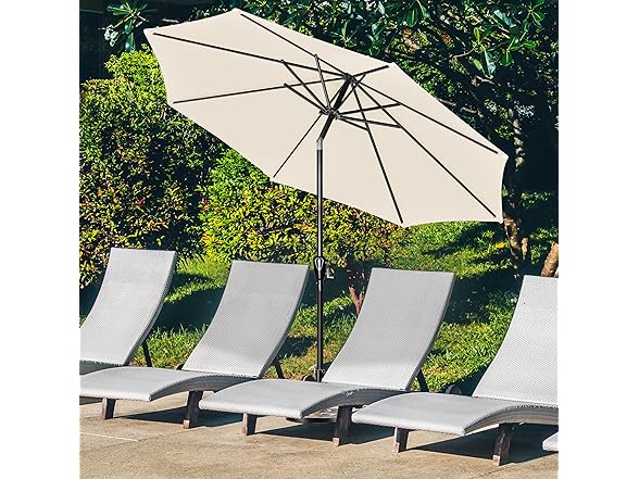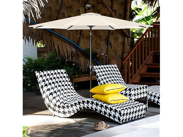 - Wide applicable: Our 9 feet outdoor patio umbrella is perfect for a 42"- 54" table with 4 to 6 chairs, is a perfect and essential for summer or sunny day to shade sunshine, apply to yards, beaches, gardens, patios, square, cafe, restaurant, pools and decks