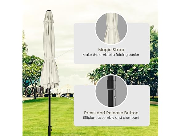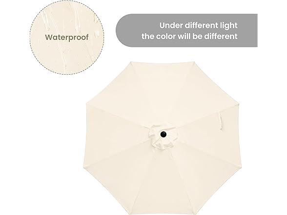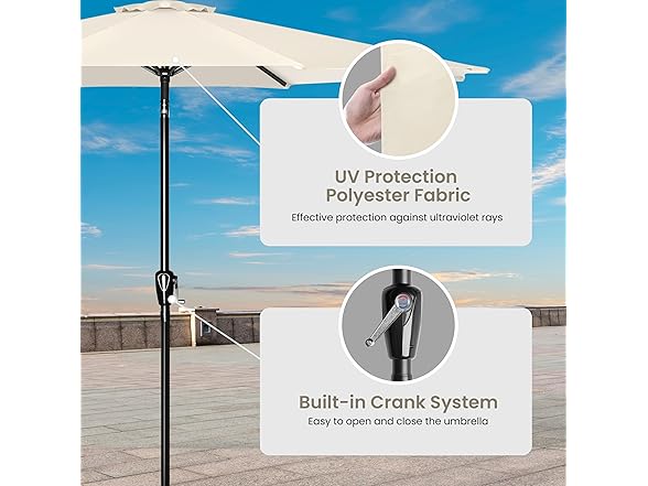 - High-quality & durable material: The patio umbrella fabric is made of 100% polyester. High-density polyester is water & UV resistant. This outdoor table market umbrella has high elasticity, firmness and durability