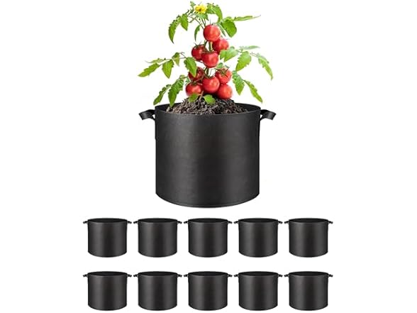 Simple Deluxe Grow Bags 3 Gallon 10 Pack Planter Pots with Handles, Thickened Nonwoven Fabric Aeration Cloth Bag, Heavy Duty Gardening for Tomoato, Potato, Vegetable, Herbs and Flowers, Black