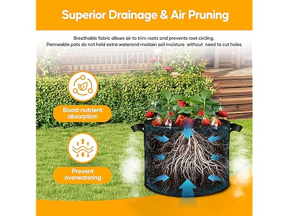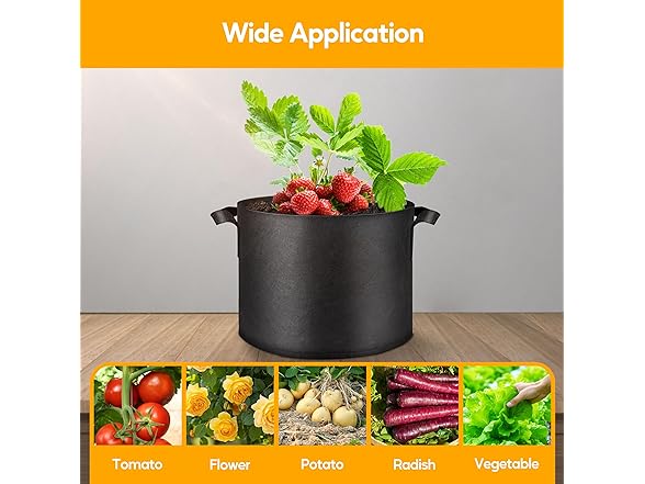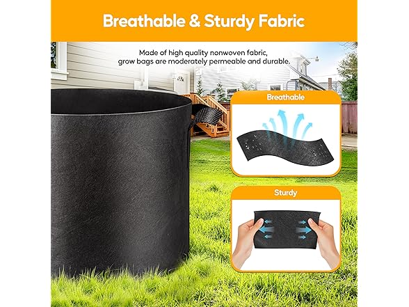 - Breathable for root formation: Nonwoven fabric pots keep your plant roots stay aerated and are air-pruned. Make roots absorbing nutrients more efficiently and preventing from circling. Air-permeable grow bags allow much oxygen to enter the plant roots