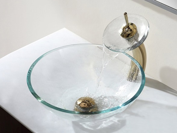 - (1) KRAUS Single Lever Vessel Glass Waterfall Bathroom Faucet