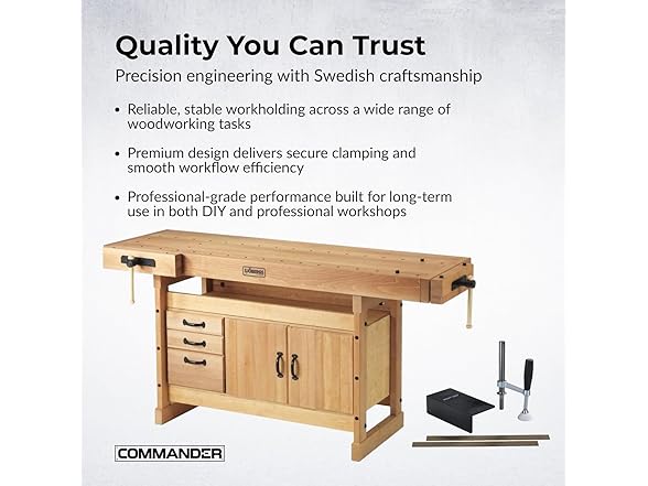 - Workbench With Premium Beech Wood Construction: Built with a durable 1-1/2" beech wood top and 4-5/16" skirt, this workbench offers long-lasting stability for woodworking, DIY projects, and detailed craftsmanship on any table or workshop setup