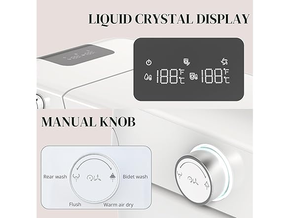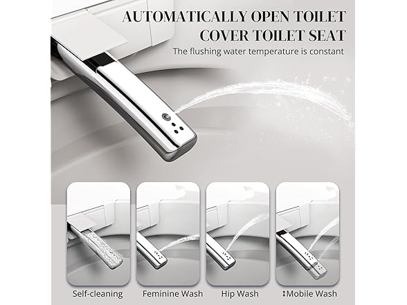 - 【Customizable Cleansing Options】The self-cleaning arc wand is engineered for personalized hygiene, offering an array of adjustable settings: spray shape, position, water pressure, temperature, and dynamic pulsating and oscillating functions. Both anterior and posterior wash settings ensure a warm, soothing cleanse.