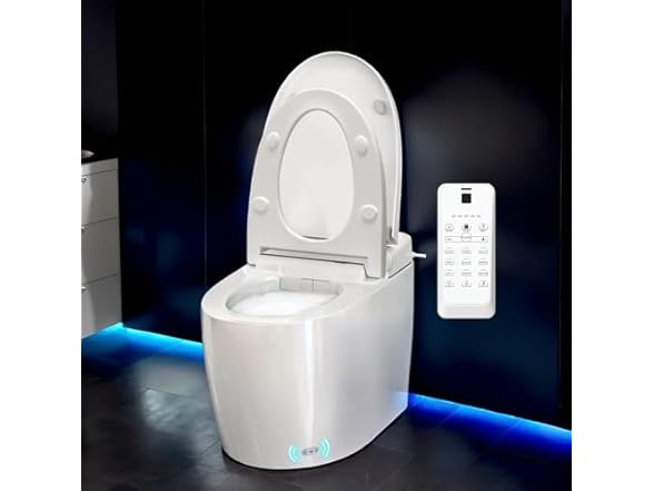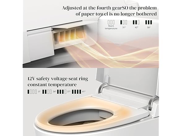 - 【Modern Smart Toilet】This seamless one-piece toilet merges a sleek, minimalist aesthetic with superior comfort. It boasts a wealth of advanced features, including a heated seat, soft nightlight, deodorizing system, instant heated water, a warm air dryer, and an LED screen. A remote control enhances convenience for users.