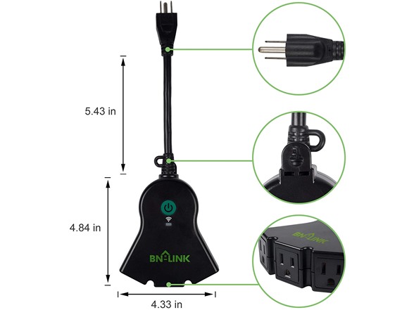 The future is now. Use the BN-LINK Outdoor Smart Wi-Fi Outlet with 3 Sockets to turn electronics on or off from anywhere with your smartphone using the app or by simply giving voice commands to Amazon Alexa or Google Assistant. No Hub Required. The unit is Weatherproof rated for extra protection against the elements and has 3 sockets for great versatility and functionality.