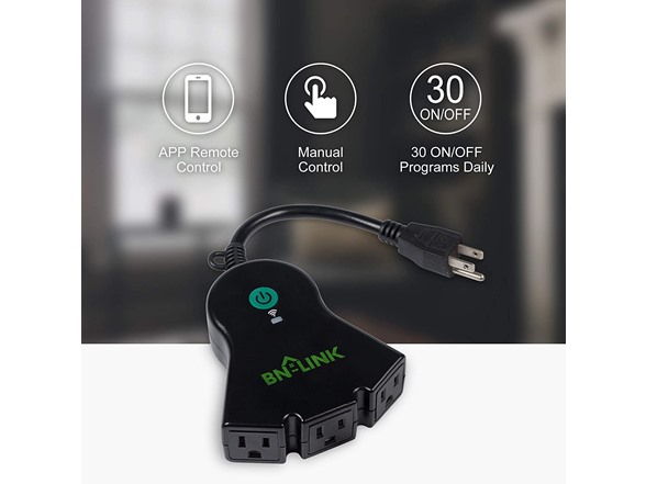 Three outlets do not work independently of one another. Also features a 6.8 inch cord. Requires a secured 2.4 GHz Wi-Fi network connection. Trouble connecting? Try AP mode. ETL Listed. Our product is rated: 15 A, 125 V, 1875 W.