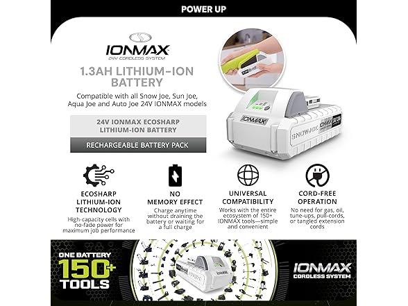 Snow Joe Certified Authentic 24VBAT-LTW EcoSharp Pro Lithium-Ion Battery, 24 Volt, 1.3-Ah