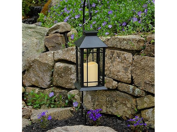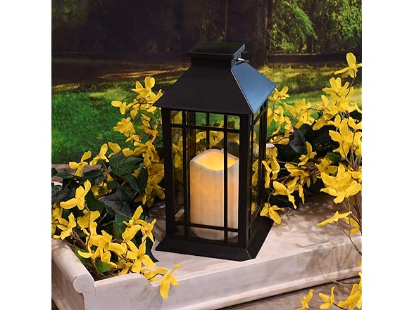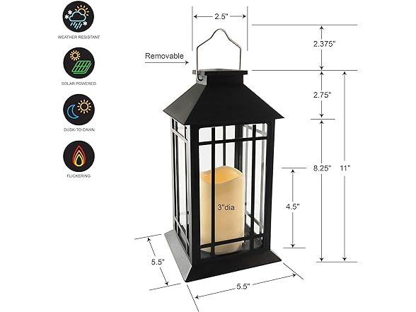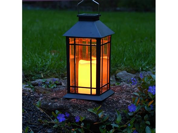 LumaBase Solar Powered Lantern with LED Candle - Black Window