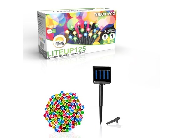 The LITEUP125 by Touch Of ECO are outdoor solar LED string lights that will add light to any home or landscape without the need of long power cords or an increased electricity bill.