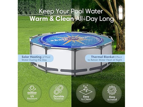 - Retains Heat and Water Chemistry: This solar blanket cover retains heat at night and reduces evaporation of water and chemicals
