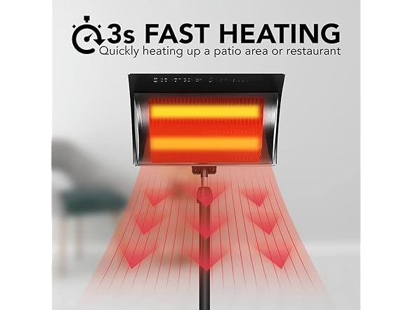 - 3-SECOND WARMTH AT STARTUP: WITH infrared electric fast heating technology, the Simple Deluxe Electric Patio Heater provides instant heat within 3 seconds of switching on. The infrared technology is transferred directly as heat to nearby people and surfaces can improve blood circulation and promote metabolism.