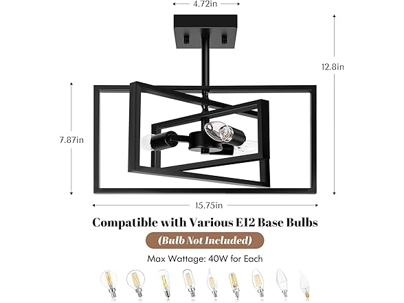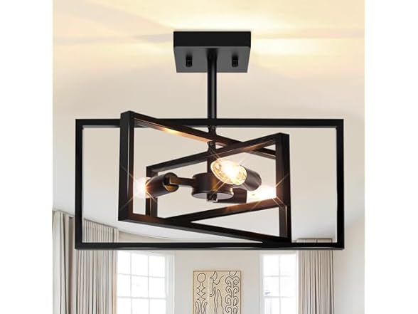 In the Box: (1) Sucolite 3-Light Farmhouse Semi Flush Mount Ceiling Light Fixture, Rustic Vintage Ceiling Lighting Black Metal