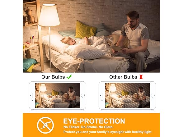 - 60W Equivalent Eye-caring Light: By generating 800 lumens of light, our dimmable LED bulbs can perfectly replace 60W incandescent bulbs with only 7 watts used. Save you about 90% on the electricity bills without undermining luminance level. Besides, they give off stable light without flicking, buzzing or harsh glare, effectively protecting you and your family’s eyes