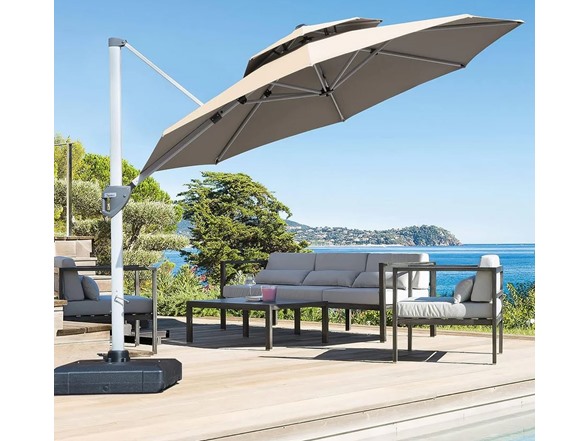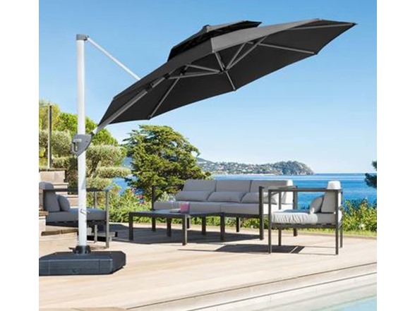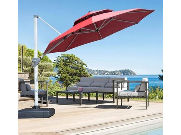 Sumbel 11-Foot Round Premium Cantilever Patio Umbrella with Aluminum Frame with Base