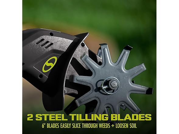 - Efficient Dual Tilling Blades: Dual steel blades cultivate a 4.25-inch wide by 6-inch deep path in one pass—perfect for prepping garden beds or loosening tough soil.