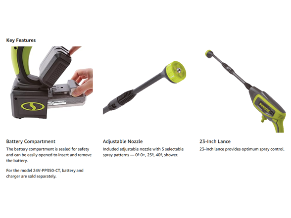 Sun Joe 24V-PP350-CT 24V iON+ Cordless 350-PSI 0.6-GPM Power Cleaner - Core Tool