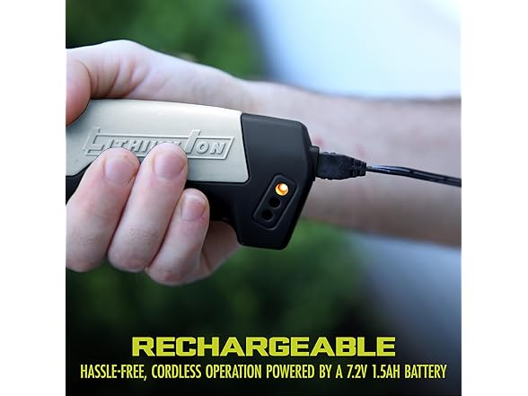 - BUILT FOR RESULTS: Our Sun Joe cordless power system runs on a rechargeable 7.2-volt lithium-ion battery for extra efficiency between projects. It also includes a safety switch for peace of mind.