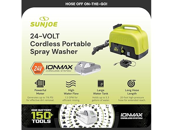 - Cordless Convenience & Long Runtime: Powered by a 24V rechargeable lithium-ion battery, this portable washer delivers up to 38 minutes of runtime, giving you complete freedom of movement without the need for a power source.