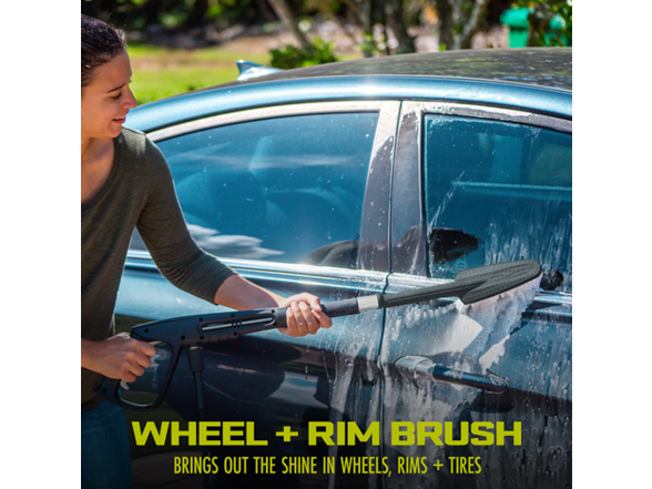 - Attachments Included: 18.6 Fl oz foam cannon, wheel + rim brush, utility bristle brush, and transfer adapter