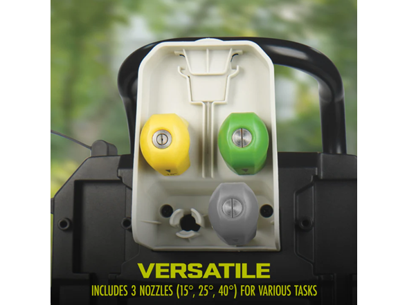- Versatile: Includes three quick-connect nozzles (15°, 25°, 40°) to tackle various cleaning jobs