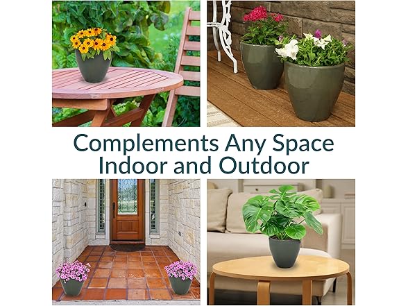 - VERSATILE PLACEMENT: Use these round garden planters on the patio, deck, or porch to add flowers to outdoor spaces, or set the planters in the sunroom, living room, or dining room to bring life to indoor spaces. If using them indoors, place a saucer (not included) beneath each flowerpot to prevent water and soil from leaking on the floor. The drainage hole in the bottom of each pot provides optimal air circulation and prevents water from pooling.