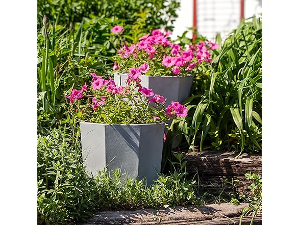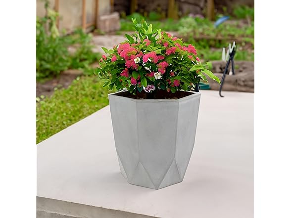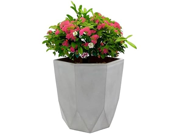 - LARGE GROWING SPACE: This modern geometric planter has a 14.75" top outer diameter, 13.25" inner top diameter, 11.75" outer bottom diameter, 5.5" inner bottom diameter, 14" outer height, and 13.5" inner height. The planter weighs 4 lbs. It can hold 4.3 gallons/0.57 cubic feet/17 quarts. The large size makes this planter great for growing plants and flowers both inside and outside.
