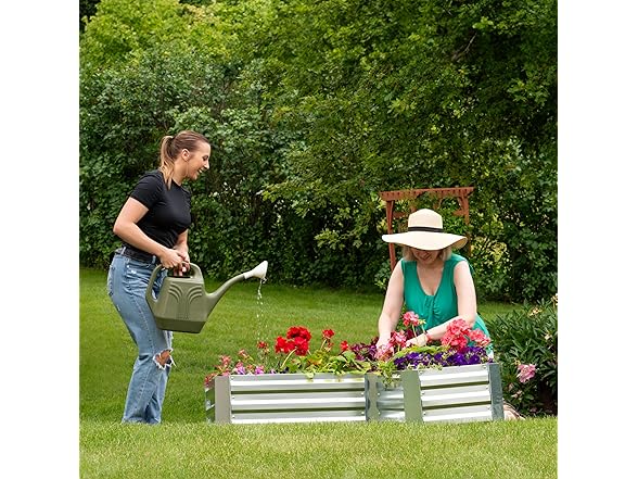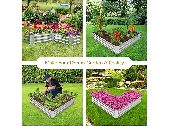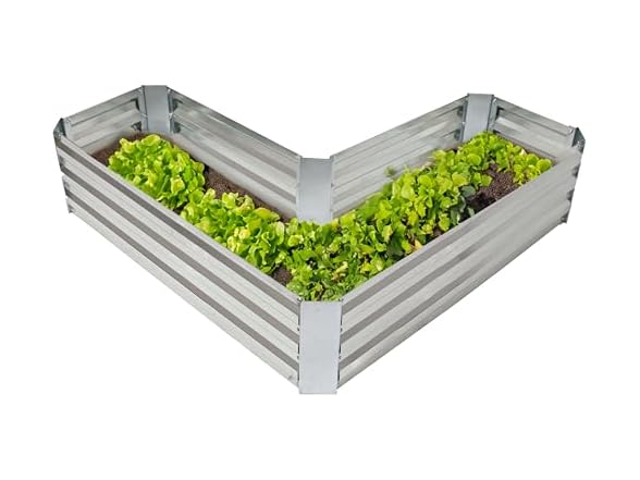 Sunnydaze Galvanized Raised Garden Bed - Metal Raised Bed for Gardening - Outdoor Planter Box for Flowers, Plants, and Vegetables - Silver - 12” H L-Shaped