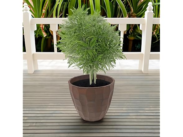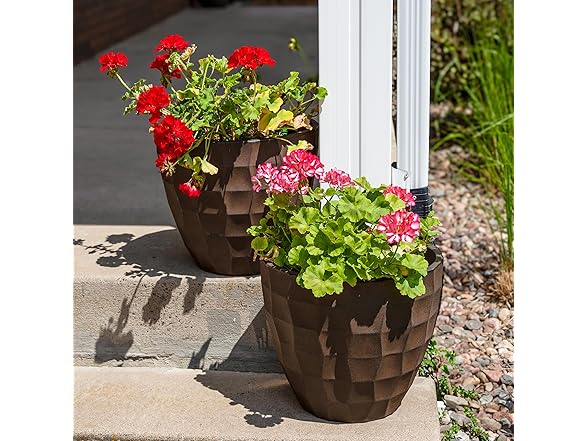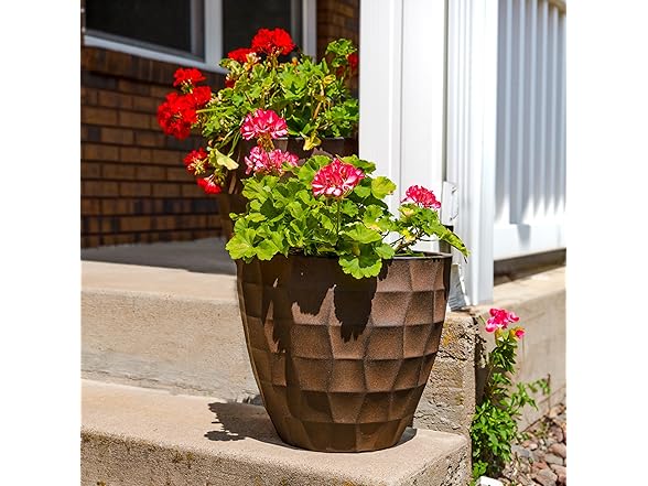 - LIGHTWEIGHT AND DURABLE: This large flower pot is made from durable linear low-density polyethylene (polyresin). Polyresin resists cracking from damaging UV rays and cold temperatures. The planter features a hand-painted, textured finish that makes it a staple for any outdoor area. The flowerpot is lightweight and easy to carry to any indoor or outdoor space. Due to the manual painting process, some slight variations in color may occur.