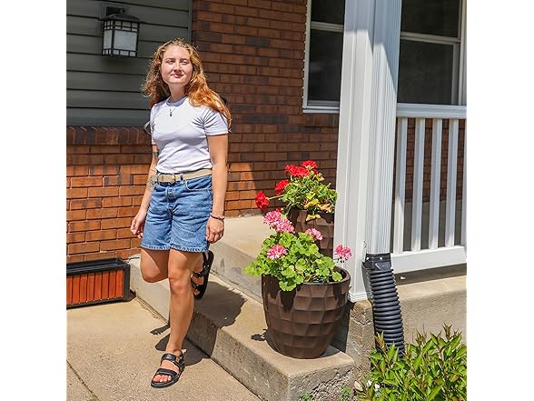 - ENHANCED INSULATION: The full depth of the inner wall protects and insulates roots from changes in temperature without sacrificing soil capacity. The outdoor planter pot's outer wall can be filled with gravel or sand to weigh it down to withstand windy conditions. Remove the plug at the bottom of the planter to fill the outer wall.