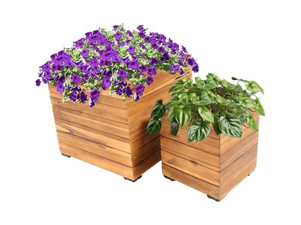 - WOOD DESIGN: The square outdoor planters are made from durable and beautiful acacia wood. The wood is finished with a smooth, oil finish for added beauty. The planter is slightly raised off the ground on 4 feet made from polypropylene.