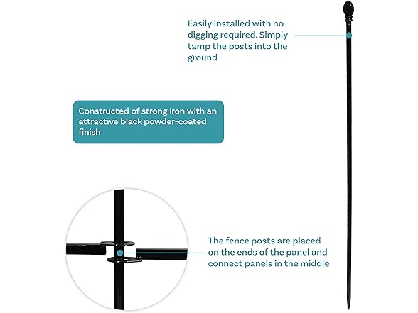 - SECURE AND STABLE SETUP: The included fence posts keep both panels firmly anchored for a stable and lasting garden border. Place a post on either side of the garden fence border panel and one in the center to connect all pieces. No digging or assembly is required.