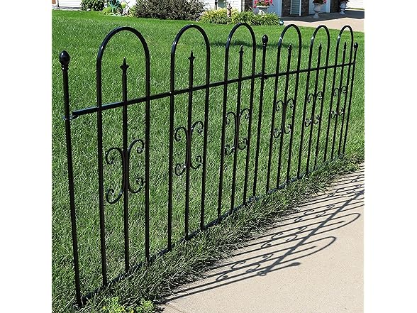 - DURABLE, WEATHER-RESISTANT CONSTRUCTION: Made from iron with a black powder-coated finish, these metal fence panels withstand outdoor elements and maintain their appearance over time.