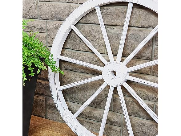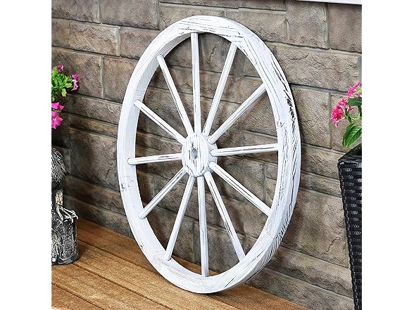 - BUILT TO LAST: This product includes 1 wooden wagon wheel. The decorative accent is constructed of durable, natural fir wood. Also maintenance is easy, so with proper care, the wagon wheel wall decor will look its best for years to come.