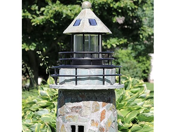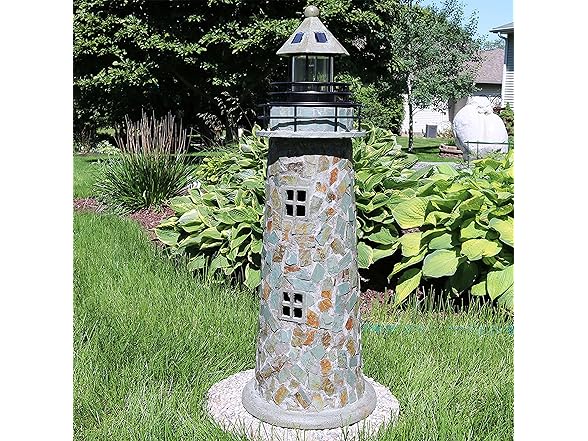 - CHARMING COBBLESTONE LOOK: Add a nautical touch to any outdoor space with this stylish lighthouse ornament. The textured, cobblestone design brings coastal charm to the patio, flower bed, deck, front yard, porch, or backyard.
