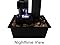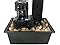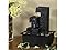 Tiered indoor waterfall water fountain for table and desktops: Resembling ancient aqueducts, this unique little water fountain is a great artistic home decor piece that makes an ideal professional or romantic gift. Made of sturdy black polyresin dotted with white specks, this water feature has a square, lipped base, on which three rectangular basins are strategically tiered (the top one is tower-like) so that water pleasantly burbles as it flows down the unit, collecting in the bottom-most receptacle, which overflows and finally returns water to the base for re-circulation via a sturdy electric pump. Decorative stones (included) provide organic, natural appeal. No plumbing required, easy to assemble, and works with standard electrical outlets.